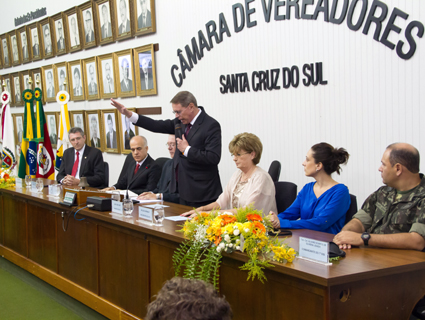 Por ter sido o parlamentar mais votado dentre os eleitos, Edmar Hermany foi quem presidiu os trabalhos durante a cerimônia de posse, que contou com a presença de representantes da Assembleia Legislativa, Poder Judiciário, Ministério Público, Forças Armadas, Coral da Afubra, banda do 7º BIB e diversas outras instituições e entidades.