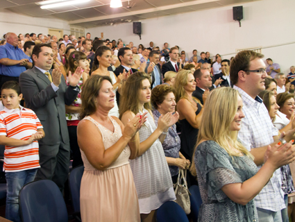 Por diversas vezes durante a cerimônia, a plateia aplaudiu de pé o novo prefeito