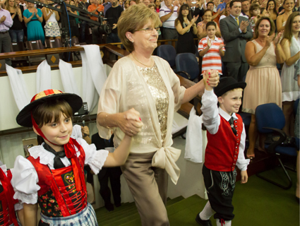 A vice-prefeita Helena Hermany chegou ao plenário na companhia das crianças do Clube 25 de julho, que simbolizavam o futuro do município