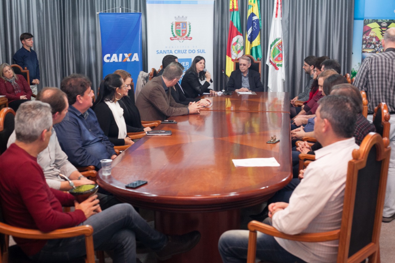 O prefeito Telmo Kirst assinou na tarde desta sexta-feira 28,  um financiamento com a Caixa Econômica Federal no valor de R$ 15 milhões para diversas secretarias.  O primeiro investimento no valor de R$ 4.560.000,00 será destinado a três secretarias, a Agricultura irá receber seis retroescavadeiras, a de Transportes e Serviços Públicos dois caminhões um para o parque de iluminação e outro para o transporte de galhos e a de Obras e Infraestrutura vai receber três motoniveladoras.  Outros investimentos  serão realizados com recursos  na ordem de R$ 10. 440.000,00. A secretaria da Educação será contemplada com R$ 2.810.000,00  para a construção de uma escola de educação infantil no bairro Esmeralda.  Além da ampliação  de duas escolas de ensino fundamental a Escola Dona Leopoldina e a Willy Carlos Froehlich.