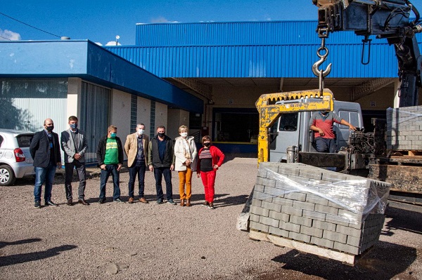 Na manhã desta sexta-feira, 25, a Prefeitura de Santa Cruz do Sul realizou o repasse de bloquetes para a obra de pavimentação do pátio da distribuidora de alimentos DRS, localizada em Linha João Alves. O incentivo estava previsto desde a expansão da empresa, há pelo menos dez anos.