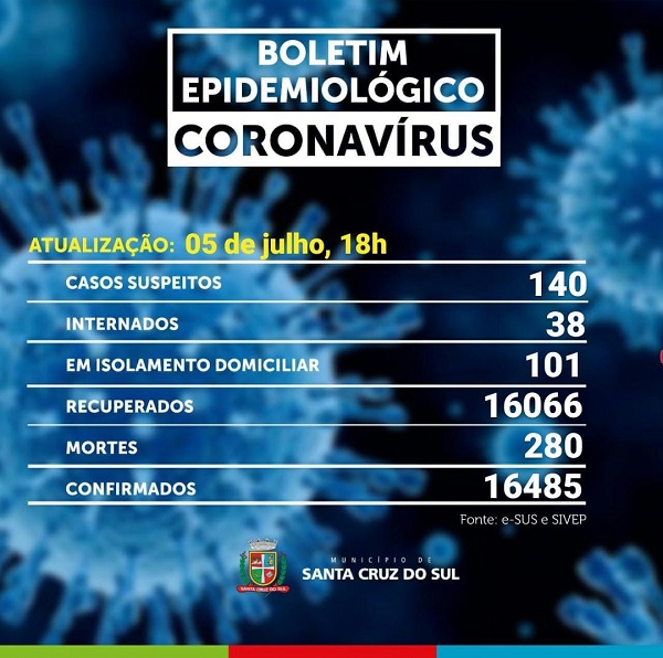 A Secretaria de Saúde de Santa Cruz do Sul, esclarece que “considerando o aumento de mais de 275% na variação semanal do número de casos confirmados no Boletim Covid-19 da região 28, a Secretaria da Saúde de Santa Cruz do Sul esclarece que não são casos ativos e atuais, mas sim de inconsistências no banco de dados e-SUS Notifica e que estavam represadas. Essas notificações estão sendo revisadas, atualizadas e inseridas no sistema de monitoramento conforme solicitação e orientação do COE-RS. Como este trabalho de revisão ainda não foi concluído, podem ocorrer novos aumentos no número de casos confirmados e de óbitos nos próximos dias”.