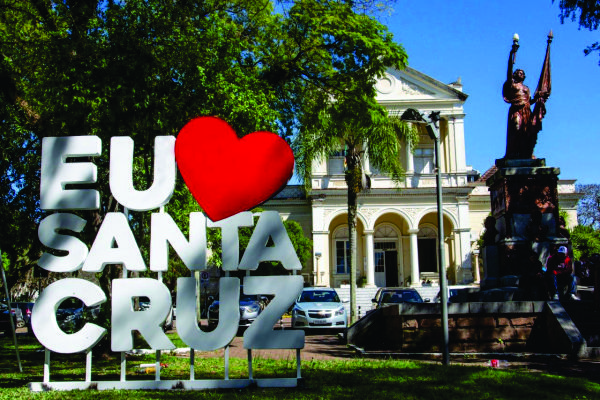 Em homenagem ao aniversário de 140 anos de Santa Cruz do Sul, que será comemorado em 28 de setembro, a Prefeitura instalou, nesta quinta-feira, 6, na Praça da Bandeira, uma moldura de metal com os dizeres “Eu amo Santa Cruz”. Outras duas serão colocadas na Praça Getúlio Vargas e no Parque da Cruz.