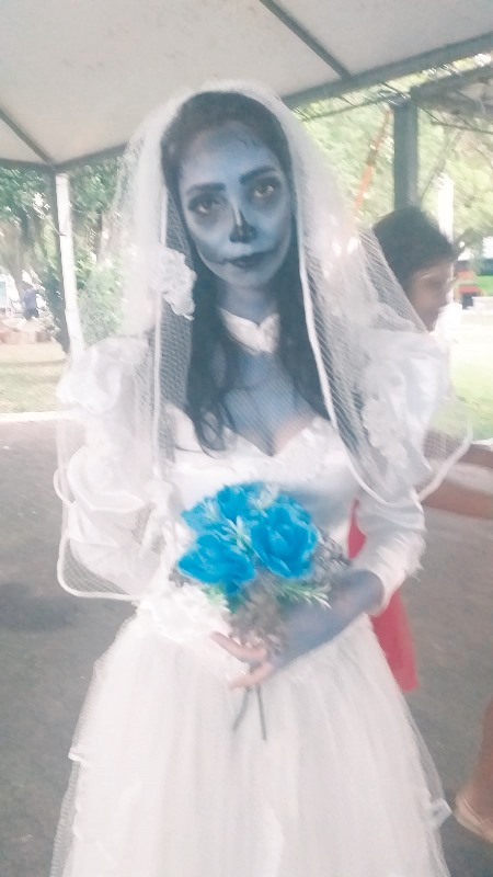 De Noiva Cadáver, Cleiciane Borba, do Bairro Arroio Grande, participou pela primeira vez da procissão. “Me inspirei no filme e no ano passado havia usado em uma festa de família. Este ano incrementei mais para a procissão que é um evento fantástico” – – Cleiciane Borba