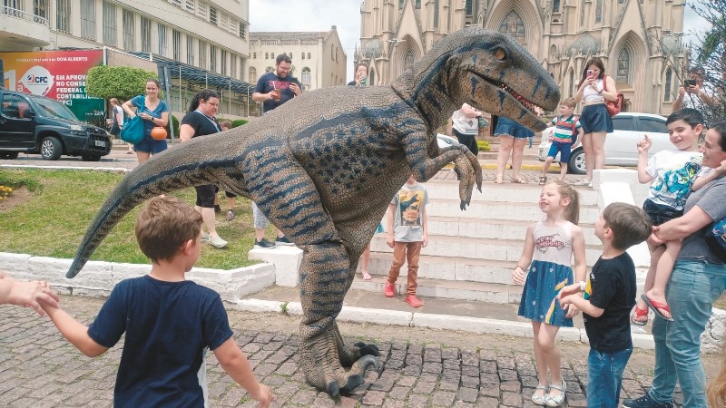 Dinossauro, em tamanho real, chamou atenção na feira