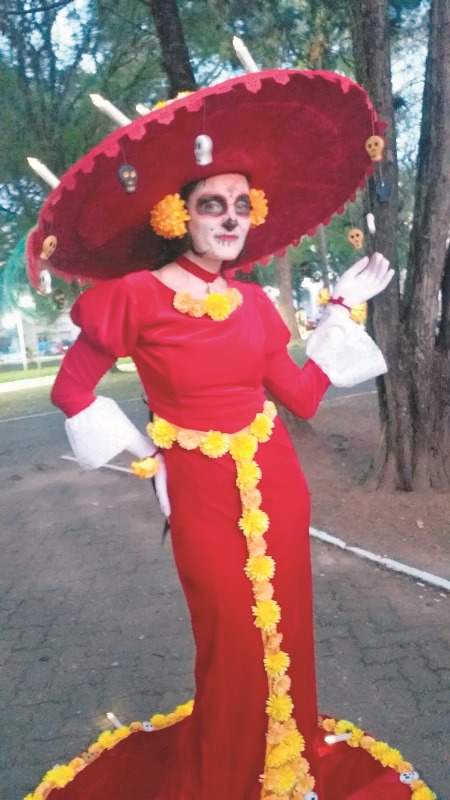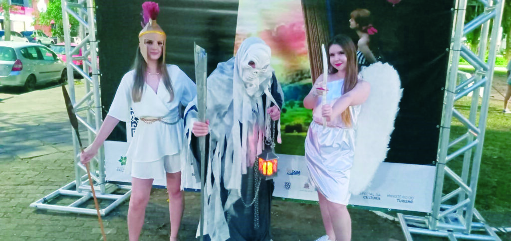 Evelyn Nassiff chamava a atenção com sua fantasia. Vinda de Porto Alegre ela veio de Catrina, uma deusa personagem do desenho ‘Festa no Céu’, representa a ‘La Muerte’ na cultura mexicana. “Já participei da procissão em 2019 e também em Porto Alegre. É maravilhoso estar aqui e ver tanta manifestação cultural!” – Evelyn Nassiff