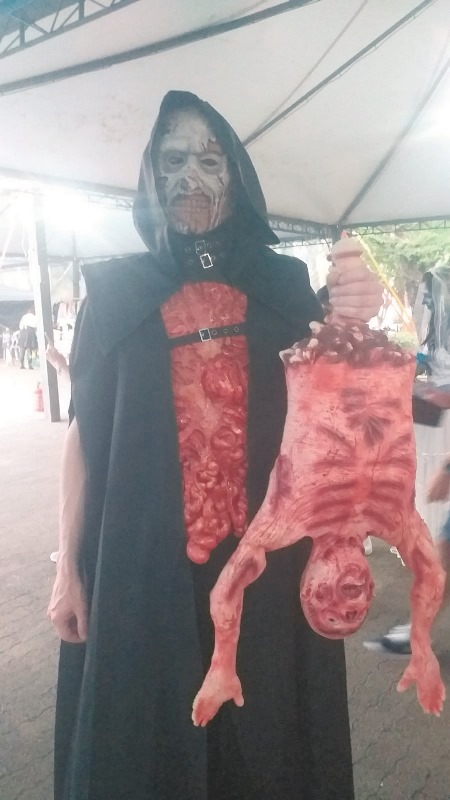 Com um pedaço fictício de um corpo cortado ao meio, Paulo Henrique chamava a atenção pela fantasia. “Já é a segunda fez que participo e este ano incrementei mais a fantasia que já foi sucesso em 2019. Ficamos muito tempo esperando para sentir novamente esta energia” – Paulo Henrique