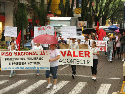 Além de exigir do governo o cumprimento da lei do piso nacional da educação, estipulado em R$ 1.451, o movimento cobra a mudança da fórmula de reajuste do piso, defende os planos de carreira, e a aplicação dos 10% do Produto Interno Bruto (PIB) na educação.