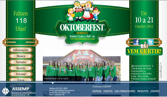 Inicia nesta sexta-feira, dia 15, uma das inovações propostas pela Diretoria Executiva da 28ª Oktoberfest e Feirasul de Santa Cruz do Sul – que neste ano acontecem de 10 a 21 de outubro – para o concurso que vai eleger as soberanas da maior festa alemã do Estado. Até o dia 5 de julho, os internautas podem acessar o site da Festa da Alegria – www.oktoberfestsantacruz.com.br – e votar na sua candidata favorita ao título. “Esta é mais uma novidade do concurso para aproximar cada vez mais a comunidade da Oktoberfest, com o intuito também de incentivar a participação popular”, destaca o diretor de Marketing da Festa, Diego Puntel.