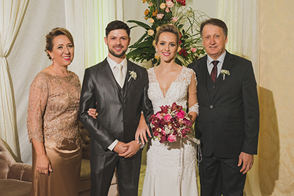 Conduzida de modo impecável pela Promopres Promoções e Eventos, a recepção transcorreu em clima de glamour e inovações. Desde a entrada, tudo se mostrou um convite ao bom-gosto, iluminação cenográfica, velas e milhares de flores como rosas chilena em vários tons, astromélias e mosquitinhos faziam parte da ambientação da Floricultura Kativa. A noite foi embalada musicalmente pela N’ Band. Tudo clicado pela lente de Cristian Frantz e Marcelo Mattos da Cia. Multimídia.