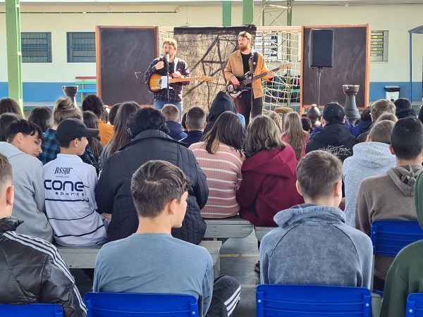 Durante o show, na Emef Guido Herberts, Roberto e Ricardo Pohlmann executaram canções do primeiro trabalho, homônimo, lançado em 2021, e canções novas, que estarão no próximo disco, “A cordilheira do Botucaraí”. Os músicos também falaram sobre o processo de feitura das músicas, as histórias por trás delas, bem como a relação com referências locais do Vale do Rio Pardo, marca da Ramal 314.