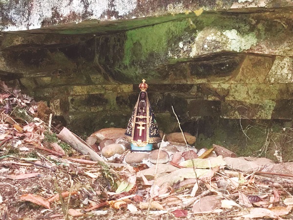 No local há uma grutinha com a imagem de Nossa Senhora Aparecida