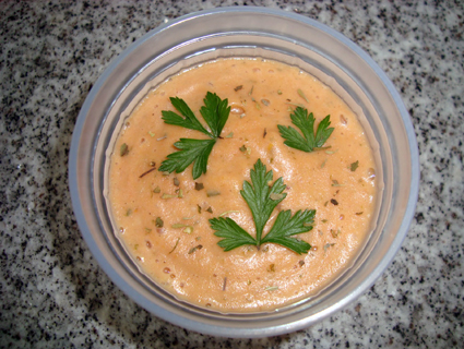 No liquidificador, coloque os tomates, os ovos, 2 cebolas e o leite. Bata bem até que se forme uma massa. Acrescente o pão embebido no leite, a massa de tomate e o azeite de oliva. Numa panela, coloque a cebola restante ralada, frite-a com o louro. Acrescente a massa do liquidificador. Quando desgrudar do fundo da panela, coloque o queijo ralado e o tempero verde. Deixe esfriar.
