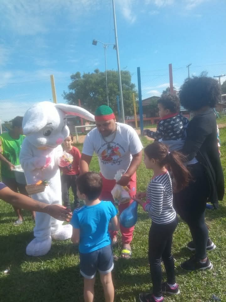 “É uma ação social dentro da comunidade do Menino Deus, onde nasceu a Salve Jorge, e nos bairros arredores. Nesta ação social, a gente tenta levar um pouco de felicidade, e não deixar morrer esse sonho do coelhinho da Páscoa e da criança ganhar o seu chocolate. Muitas vezes, nas comunidades carentes, o pai e a mãe não conseguem dar um ninho de Páscoa para a criança e vai perdendo esses contos, como Natal e Páscoa. Então fazemos essa ação social de entregar os ninhos para crianças carentes”, destacou Leandro. Quem quiser ajudar, pode entrar em contato com ele pelo telefone (51) 99257-7599.