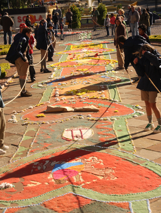 A principal mensagem que os dois tapetes (dentro e fora da catedral) demonstram, segundo Lúcia, é a homenagem a Jesus Eucarístico. “Nós cristãos cremos que Jesus está presente na óstia consagrada e na festa O levamos pelas ruas da cidade em homenagem ao Seu sangue e corpo”, salienta.