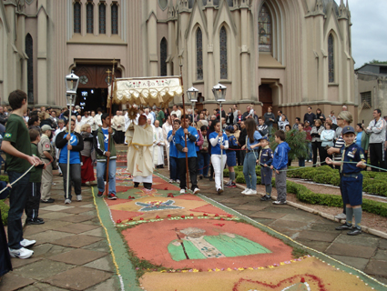 Desde hoje cedo a comunidade se prepara para comparecer na Catedral São João Batista para a festa de Corpus Christi. Os envolvidos na organização e coordenação do evento trabalharam três semanas articulando tema, motivo, músicas, orações, buscando e confeccionando material, realizando as ornamentações da igreja e dos tapetes. A culminância da celebração será a procissão com passagem pelos tapetes artesanais.