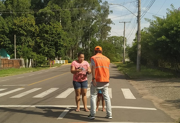 Uma ação realizada em conjunto pela Defesa Civil e pela Guarda Municipal, no último final de semana, buscou sensibilizar a comunidade levando informações para evitar a disseminação do coronavírus. Ao percorrer as ruas dos bairros Santa Vitória, Menino Deus, Bom Jesus e Loteamento Beckenkamp, os agentes abordaram pedestres que não estavam utilizando o equipamento de proteção e chamaram a atenção para a necessidade e obrigatoriedade do uso neste momento crítico da pandemia.