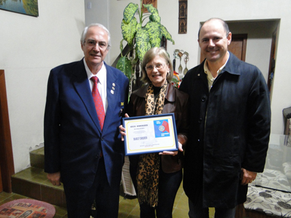 O presidente do Rotary Club Santa Cruz do Sul, Cesar Spohr junto com o governador distrital Marco Antônio da Luz esteveram em visita a Marly Dreher onde fizeram a entrega do título de sócia honorária. Marly sempre trabalhou junto ao Rotary em benefício da comunidade, inclusive sendo presidente da Casa da Amizade.
