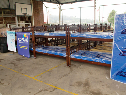 Beliches, colchões e sofás foram doados na manhã de terça-feira