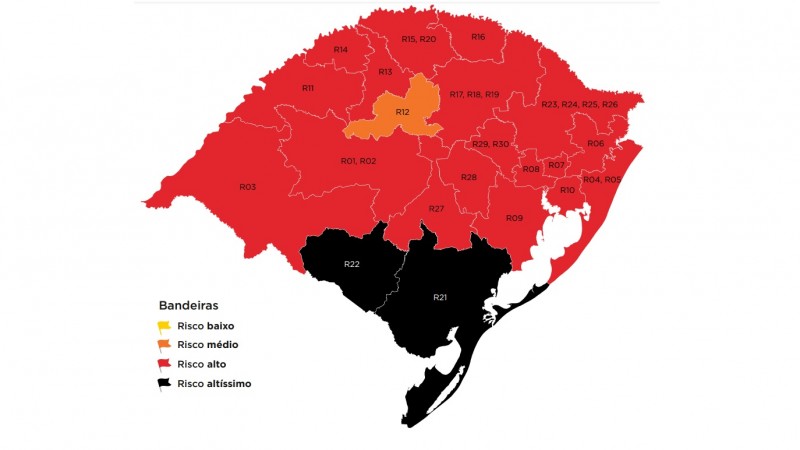 Assim, o mapa definitivo da 32ª semana do Distanciamento Controlado permanece com 18 regiões em bandeira vermelha (risco alto) e uma em laranja (médio), que é a região de Cruz Alta, conforme a classificação preliminar. A vigência das novas bandeiras segue até as 23h59 da próxima segunda-feira, 21.