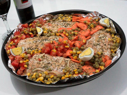 Início Colher de Pau Salmão ao molho de laranja com legumes