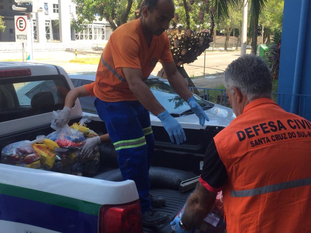 Mais de 300 cestas já foram entregues para famílias carentes de Santa Cruz que se cadastraram para receber alimentos e materiais de higiene e limpeza. Os produtos são levados por uma equipe formada por profissionais da Guarda Municipal e da Secretaria de Políticas Públicas e Assistência Social. A doações também estão sendo feitas nos pontos de entrega de marmitas das cozinhas comunitárias, nos bairros Santa Vitória, Bom Jesus, Faxinal Menino Deus, Margarida, Progresso, Rauber e no Loteamento Beckenkamp.