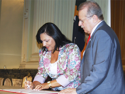 Prefeita Kelly e o governador Tarso Genro assinam o termo de compromisso