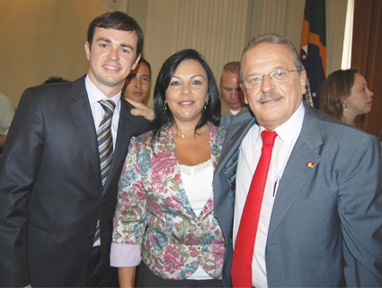 Secretário Maurício Dziedricki, Kelly Moraes e Tarso Genro: economia solidária