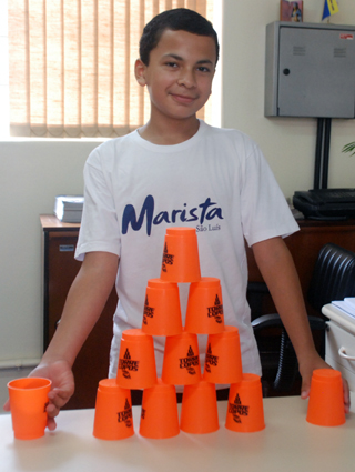Como Vinícius tem o mesmo jogo usado no programa, acha que facilita o seu desempenho. Se sagrar-se campeão, o estudante ganha um troféu e uma premiação em dinheiro. “Quero comprar um computador novo e um celular moderno”, deseja o menino, craque em equilíbrio de copos.