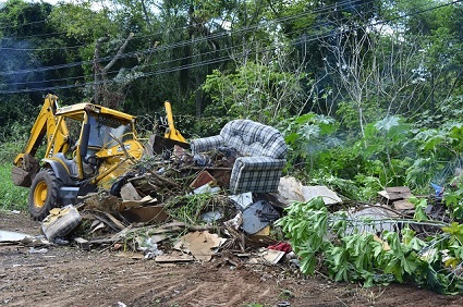 Na manhã desta quarta-feira, 24, a Central de Serviços da Secretaria Municipal de Meio Ambiente, Saneamento e Sustentabilidade (SMMASS) atacou um dos muitos pontos de descarte irregular de resíduos existentes no município. Em um terreno às margens da Rua Tarumã, no bairro Monte Verde, nas proximidades do Parque da Cruz, um caminhão e uma retroescavadeira foram utilizados para a retirada de  quase 15 cargas de entulhos.