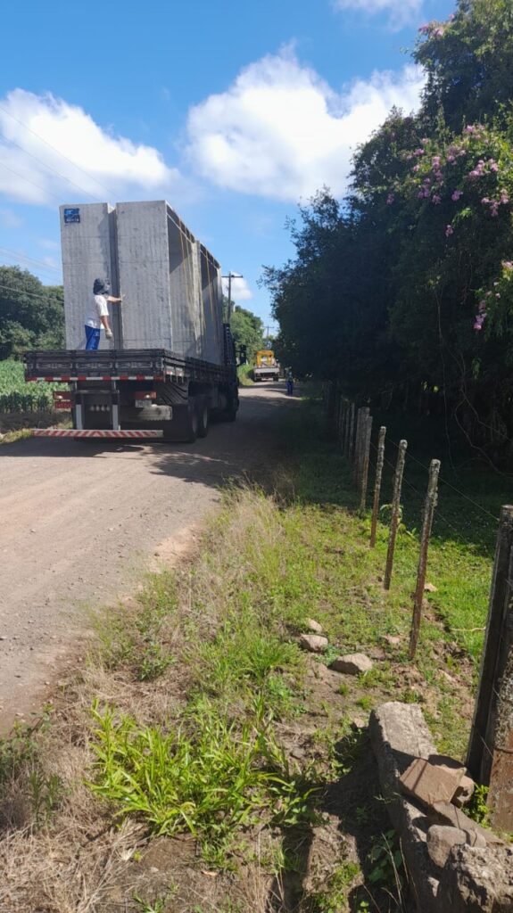 A Secretária de Obras e Infraestrutura (Seoi) de Santa Cruz do Sul realizou, na manhã desta terça-feira, 20, o transporte de 10 galerias de 3m x 3m de concreto para Linha Pinheiral. O material será usado na construção de uma ponte na localidade de Seival. A expectativa da secretaria é de começar a obra até o final da primeira quinzena de janeiro de 2023.