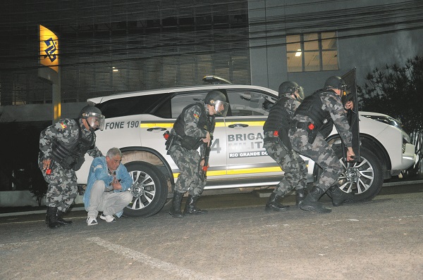 Um grande público foi assistir às atividades ao lado da Praça Getúlio Vargas, além de líderes municipais e convidados. O foco foi a agência do Banco do Brasil, na Rua Marechal Deodoro, no Centro, e a sede da Protege Transporte de Valores, na Rua Júlio de Castilhos, Bairro Goiás. Na instituição financeira, “assaltantes” renderam vítimas com fuzis e pistolas. Na empresa, foi revivido o assalto protagonizado pela quadrilha de José Carlos dos Santos, o Seco, em 2006 na então Proforte – o criminoso liderava ataques a carros-fortes na época.