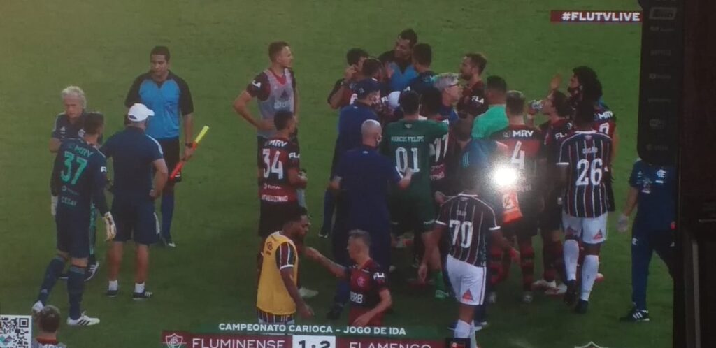 Uma piada isso sim. O que se vê nos campos de futebol são abraços por todos os lados e ninguém se preocupando com o vírus. O protocolo proposto pelos clubes de futebol se cumpriu num primeiro momento e a TV pouco mostrou as comemorações. No clássico de domingo, entre Flamengo e Fluminense, deu para ver muito bem que não existe protocolo em jogos de futebol. Ao final do jogo, os dois técnicos foram para cima da arbitragem para reclamar e com os jogadores juntos, formando uma grande aglomeração. Portanto, o futebol tem aglomeração sim.