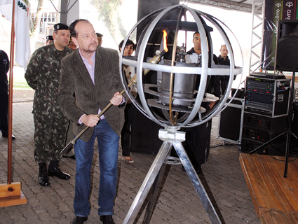 Campis acendeu a pira que se encontra na Praça Getúlio Vargas