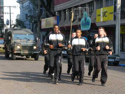 Na manhã do sábado, fogo foi trazido pelos atletas do 7º BIB