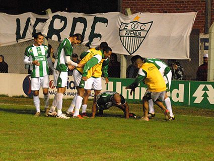 Carlos Alberto comemora seu gol cercado pelos companheiros: Avenida ganhou na abertura das quartas-de-final