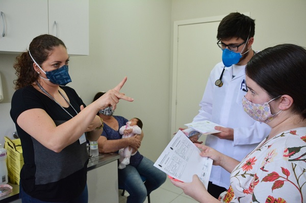 Esta semana, acompanhada da mãe, Dona Eva, e da intérprete de Libras Francine Beatriz da Silva, Ana Clara levou seu bebê, que completou 30 dias para uma consulta de avaliação no posto Figueira. Durante todo o pré-natal ela foi assistida por Francine. E mesmo antes, desde o ano passado, quando veio com a família de Cachoeira do Sul para residir em Santa Cruz, ela já utilizava o serviço, principalmente para atendimentos na área da saúde pública. Ela têm também um filho de 4 anos, que é autista e precisa de acompanhamento constante.