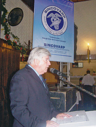 Adilo Rehbein no momento do discurso como presidente empossado da Sincotec
