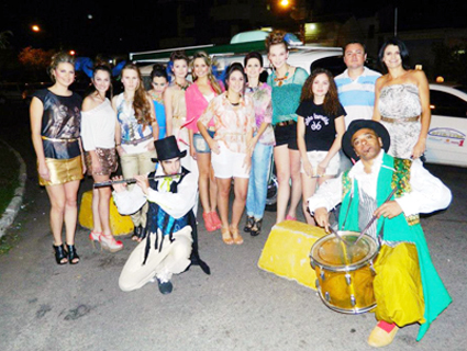 Em um ritmo new age tribal, os artistas Gilmar e Jardel, conduziram o desfile da Dita Bendita, que apresentou uma mescla de tendências da nova estação, pelas ruas de Santa Cruz do Sul, no dia 18 passado. O evento, TA NA RUA, coloriu a cidade, levando o brilho, em looks variados, tendências que estarão nas ruas na primavera/verão. O evento foi idealizado pela Sol Hilbig, proprietária da loja, com uma proposta inovadora, que levou a moda até as pessoas. O desfile iniciou na loja, onde as clientes foram recepcionadas com champagne, frutas tropicais e araras cheias da coleção primavera/verão. O tapete vermelho, estendido na calçada, em frente a Dita Bendita, com luzes de lead, foi o primeiro cenário do desfile. Em seguida as modelos foram deslocadas até a Chopperia Amesterdan, onde a coleção foi recebida com muitos aplausos. Saindo da rua central da cidade, o próximo ponto do TA NA RUA, foi a Chopperia da Brahma, e depois, para quebrar a rota, as modelos também foram levadas ao pórtico de entrada da Oktoberfest, atraindo a atenção dos visitantes.