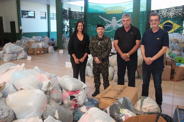 Uma montanha de carinho. Esse foi o resultado da arrecadação de roupas, calçados e outros itens que o 7º Batalhão de Infantaria Blindado (7º BIB) realizou junto à comunidade santa-cruzense para esta edição da Campanha do Agasalho. Cerca de 40 mil peças foram entregues pelo comandante da instituição, tenente coronel Marcelo Soares de Oliveira à secretária municipal de Desenvolvimento Social, Roberta Pereira, na tarde de quarta-feira, 7, no próprio quartel. Também prestigiaram o ato, o gerente de Eventos da Gazeta Grupo de Comunicações, Edson Marques, e o diretor de Responsabilidade Social da CDL, João Goerck.