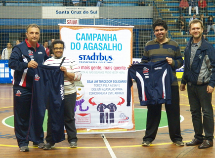 Na última sexta-feira, 28 de junho, durante o intervalo do jogo entre Associação Santa-cruzense de Futsal (Assaf) e Associação Grande São Luiz (Agsl), ocorreu o encerramento da campanha  “Quanto mais gente, mais quente!“ da Stadtbus em parceria com a Assaf, que visava o recolhimento de agasalhos.