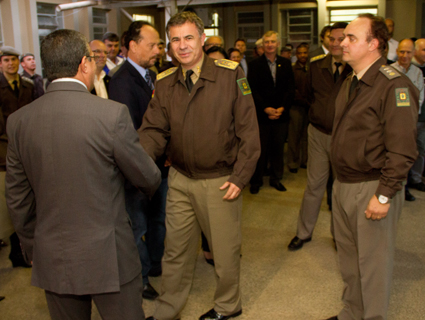 Comandante-geral da BM, coronel Sérgio Abreu, sendo recepcionado por