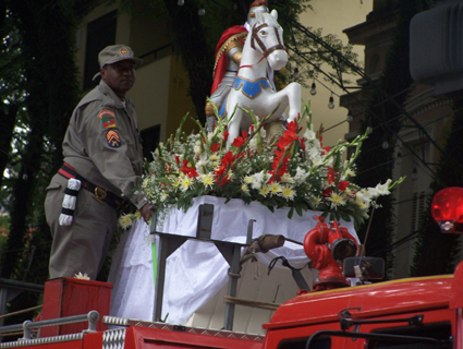 Segunda-feira, dia 23, foi comemorado o dia de São Jorge Guerreiro. Filho de pais cristãos, Jorge era um jovem soldado que desde a infância aprendeu a temer a Deus e a crer em Jesus como seu salvador. Por manter-se fiel a Jesus foi torturado de diversas formas pelo Imperador de Roma, Diocleciano. Não tendo resultados positivos na tentativa de fazer com que o jovem mudasse sua maneira de pensar, o imperador mandou degolá-lo no dia 23 de abril de 303. Foi através deste feito que surgiu a popularidade de São Jorge.