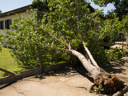 Ventania e chuva forte causaram transtornos com a queda de árvores, como esta no Loteamento Gramado, Bairro Arroio Grande