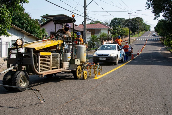O serviço inclui o reforço na pintura das faixas de segurança, da divisão de pista e a substituição de placas de trânsito. A previsão é de que até sexta-feira, 4, o trabalho esteja concluído. Na próxima semana, a equipe fará o mesmo procedimento em vias do Bairro Arroio Grande.