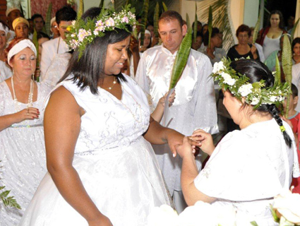 Encontrar o verdadeiro amor e subir ao altar para oficializar a união, um sonho para a maioria dos casais. Buscando mostrar que tudo supera o preconceito é que Caroline Gonçalves e Eliane Lord venceram as barreiras e conseguiram perante a religião Umbanda oficializar a união homoafetiva, ocorrida no dia 21 de abril. Assim como a tradição, elas usaram vestidos brancos de noiva e, conforme a legislação permite, tinham em mãos o documento que oficializava o relacionamento, o contrato de união estável. Tudo conspirando para que o sonho fosse realizado naquele dia.