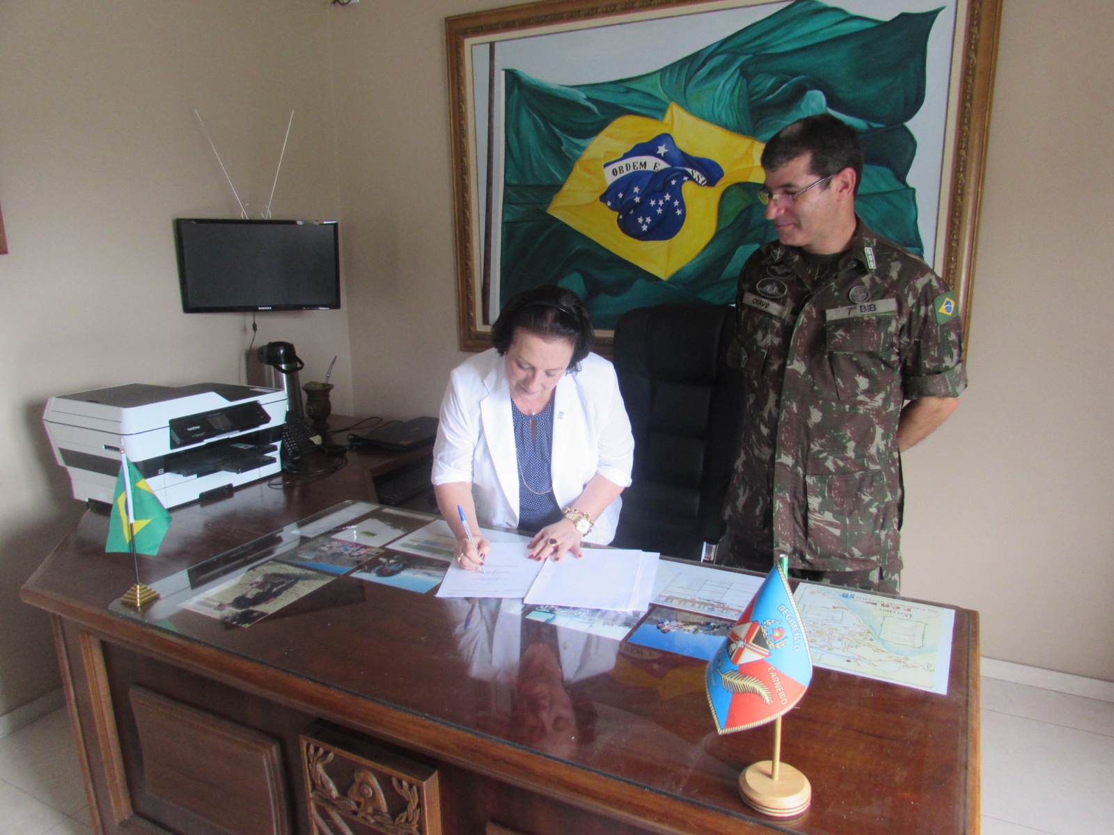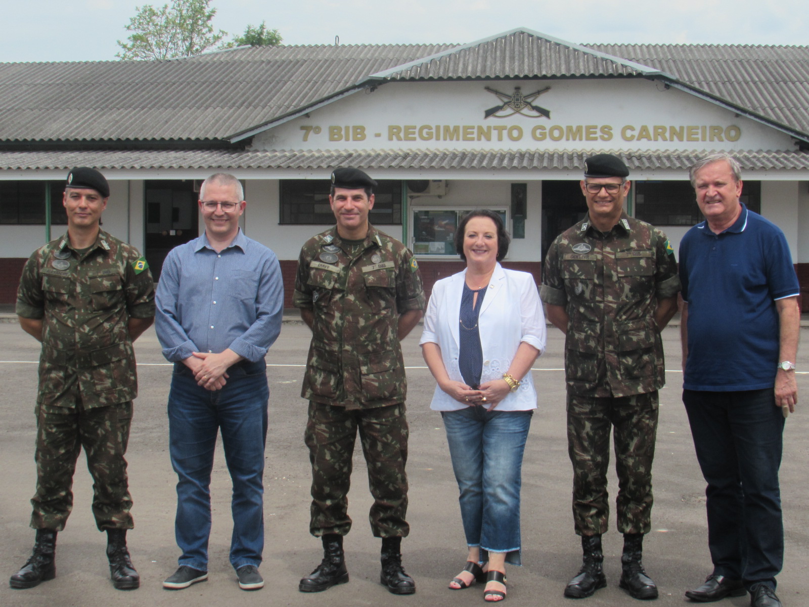 Um convênio firmado entre a Universidade de Santa Cruz do Sul (Unisc) e o Comando do Exército, por intermédio do Comando Militar do Sul, irá permitir a realização de estágios obrigatórios de estudantes de graduação no 7º Batalhão de Infantaria Blindado de Santa Cruz do Sul (7º BIB). O termo de concessão de estágio foi assinado no dia 21 de novembro pela reitora da Universidade, Carmem Lúcia de Lima Helfer, e pelo coronel Christian Augusto dos Santos Cravo.