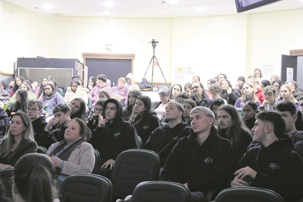 Nem a tarde chuvosa e fria impediu que muitos estudantes participassem da primeira edição do Unisc Talks, na quarta-feira, 28. A proposta busca aproximar alunos e professores do ensino médio da região ao universo acadêmico, promovendo reflexões sobre o mundo contemporâneo de forma leve, envolvente e inspiradora. A estreia do projeto reuniu três palestrantes: a vice-reitora da Universidade de Santa Cruz do Sul (Unisc), Andréia Rosane de Moura Valim, a psicóloga Makely Rodrigues e a arquiteta Alessandra Gobbi, essas duas também professoras da instituição.