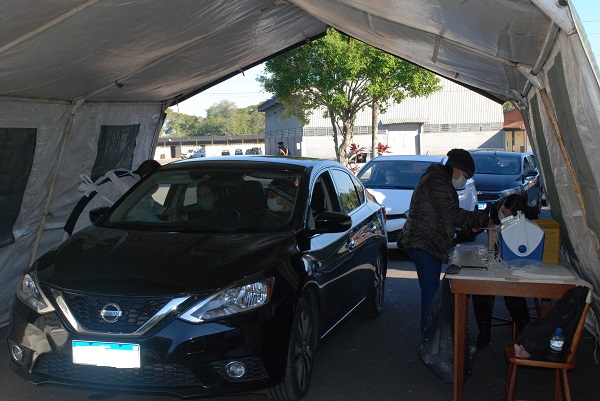 Na manhã desta quinta-feira, 22, está sendo grande a procura pela vacina contra à Covid-19, no Parque da Oktoberfest, tanto no formato drive-thru como pedestre.
