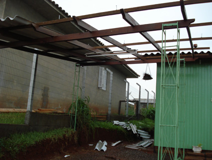 Casa em Linha Santa Cruz teve a garagem destelhada